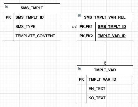 - 두 테이블의 관계를 저장하는 SMS_TMPLT_VAR_REL 테이블