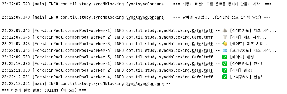log.info("=== 🔄 동기 버전: 음료를 하나씩 순서대로 만듭니다 ===\n");