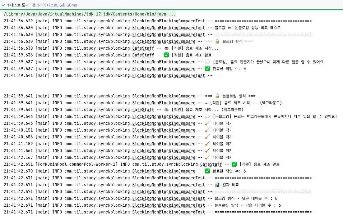 log.info("💭 [논블로킹] 음료는 백그라운드에서 만들어지니 다른 일을 할 수 있어요!");